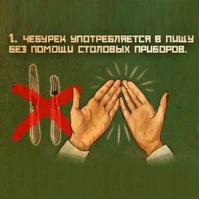 Как правильно есть чебурек? Никаких ножей и вилок! Чебурек едят руками, наша редакция советует такой способ: держать чебурек необходимо перпендикулярно полу, начинать есть нужно с верхнего края, затем выпить бульон приподняв противоположный край. От опыта и качества чебурека зависит то, сможете ли вы его съесть аккуратно и элегантно. Руководствуясь этими постулатами мы пройдемся по пяти чебуречным Москвы, в которых попробуем чебуреки с мясом и попытаемся проникнуться советским интерьером.